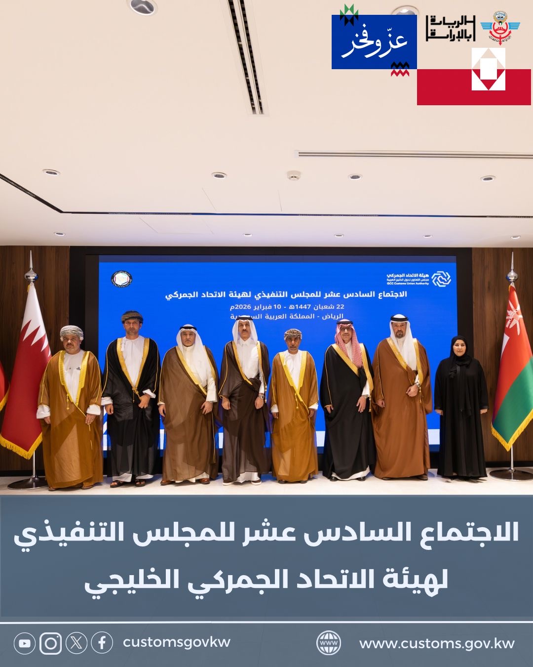 الرياض – 10 فبراير 2026 عقد أصحاب المعالي والسعادة أعضاء المجلس التنفيذي لهيئة الاتحاد الجمركي لدول مجلس التعاون لدول الخليج العربية اجتماعهم السادس ...