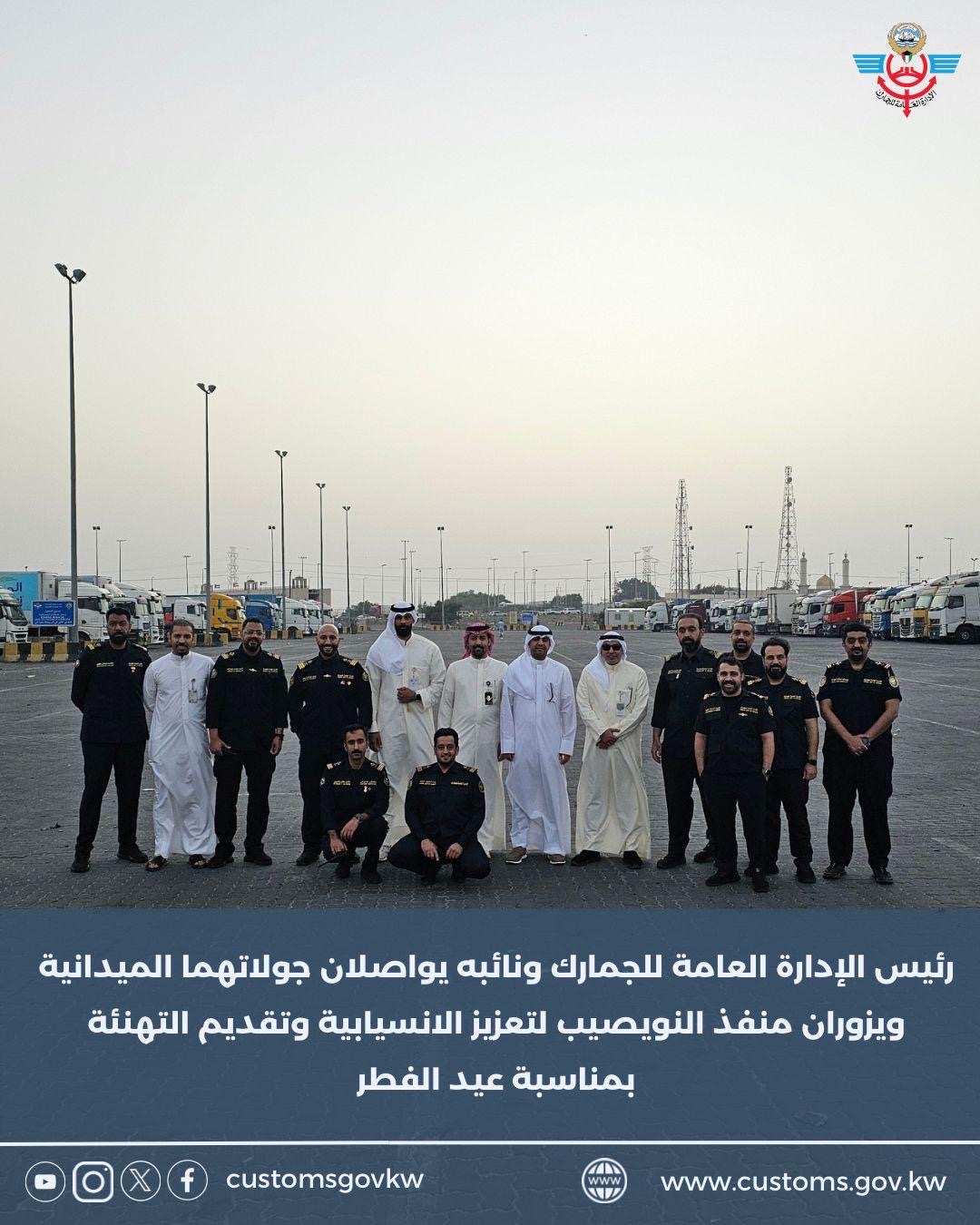 استكمالاً للجولات التفقدية التي يقوم بها رئيس الإدارة العامة للجمارك السيد/ يوسف خالد النويف، ونائب رئيس الجمارك لشؤون البحث والتحري المنافذ الجمركي ...