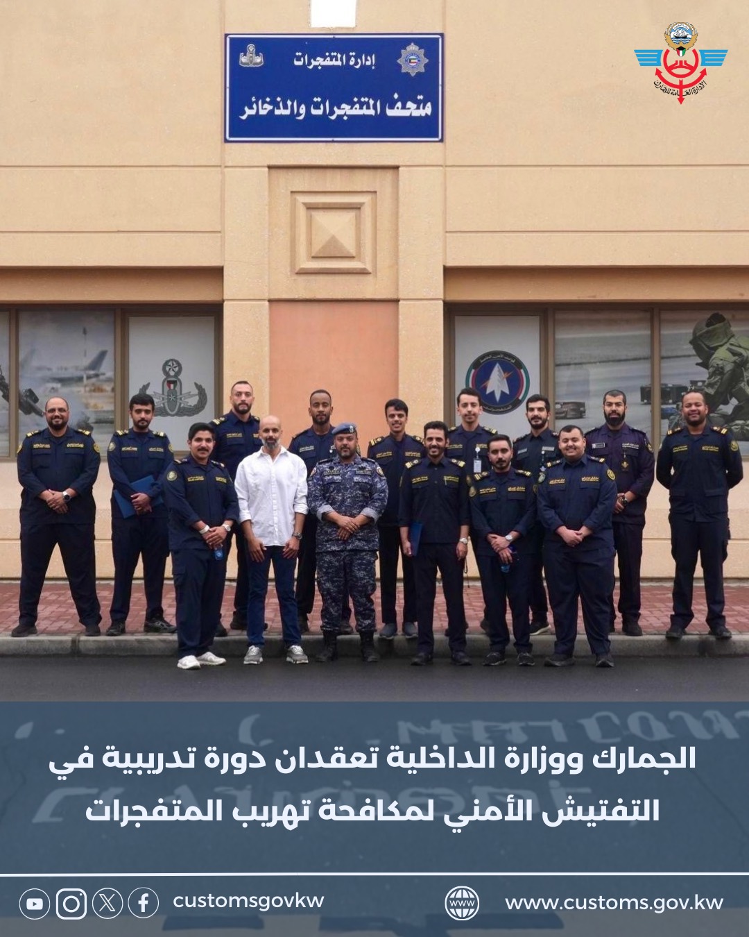 في إطار التعاون المستمر بين الإدارة العامة للجمارك ووزارة الداخلية لتعزيز منظومة الأمن الوطني ورفع كفاءة الكوادر العاملة في المنافذ الجمركية، تم تنفيذ دورة تدريبية متخصصة للمفتشين والمفتشات الجمركيين ...