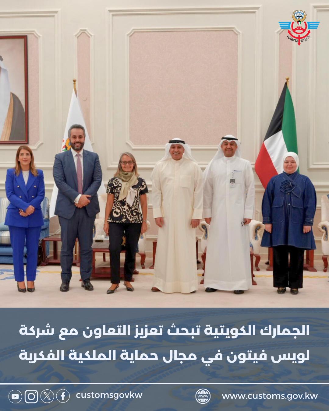 استقبل مدير عام الإدارة العامة للجمارك السيد يوسف خالد النويف، في مقر الإدارة العامة للجمارك وفدًا من شركة لويس فيتون العالمية، وذلك في إطار التعاون المشترك لمكافحة السلع المقلدة وحماية حقوق الملكية ...