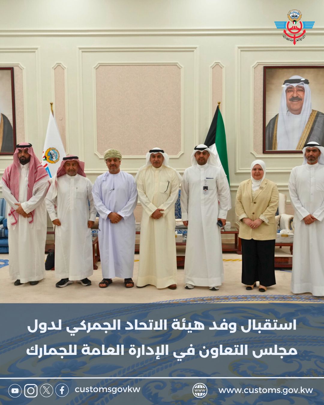 استقبل مدير عام الإدارة العامة للجمارك السيد يوسف خالد النويف، وفد هيئة الاتحاد الجمركي لدول مجلس التعاون لدول الخليج العربية، وذلك في ديوان الجمارك بمنطقة (3). وكان في الاستقبال أيضًا كلٌّ من نائب ا...