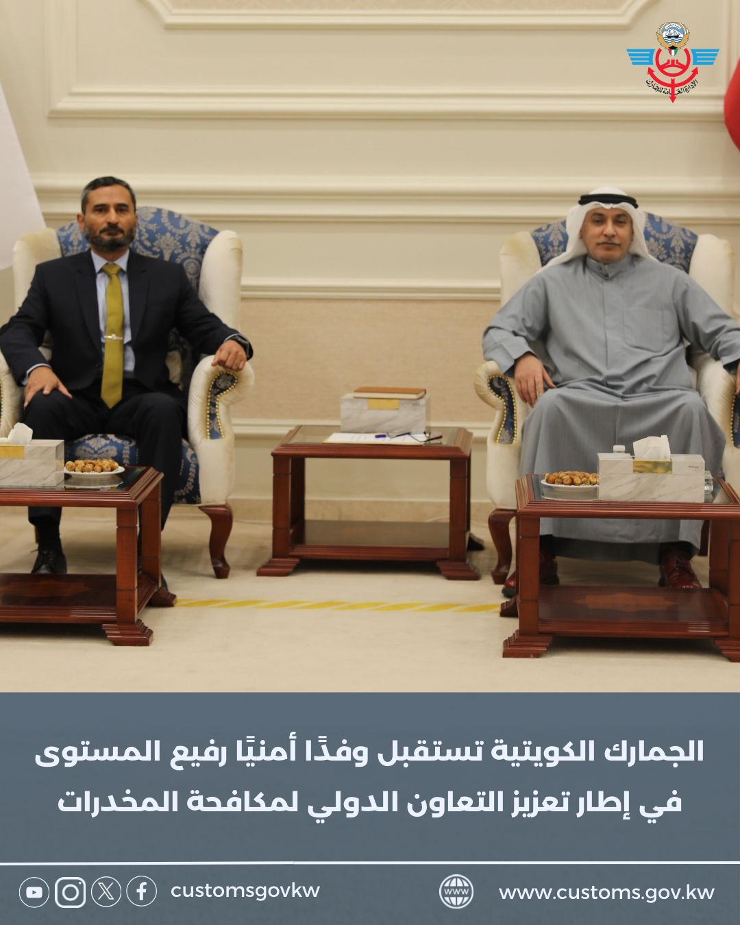 استقبل رئيس الإدارة العامة للجمارك، السيد يوسف خالد النويف، وفدًا أمنيًا رفيع المستوى من جمهورية باكستان الإسلامية، برئاسة رئيس جهاز مكافحة المخدرات الباكستاني اللواء عبد المعيد، يرافقه رئيس وحدة التح...