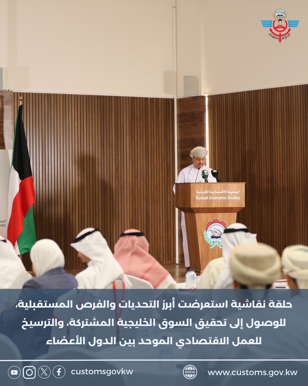 انطلقت صباح اليوم الاثنين الموافق 20 أكتوبر 2025 فعاليات الحلقة النقاشية العاشره “الاتحاد الجمركي الخليجي – التجربة والتطلعات المستقبلية” التي تنظمها الجمعية الاقتصادية الكويتية بالتعاون مع مكتب الأما...